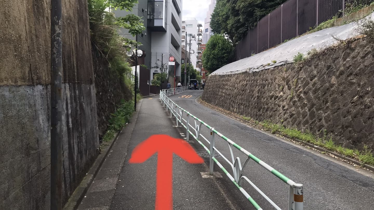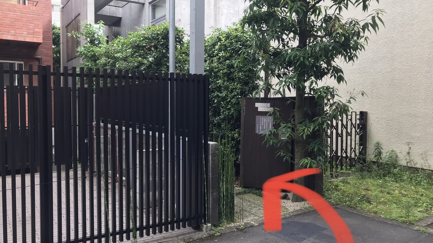 御苑の柵塀が途切れた、数十メートル先にある自販機のすぐ先を左に入る→
