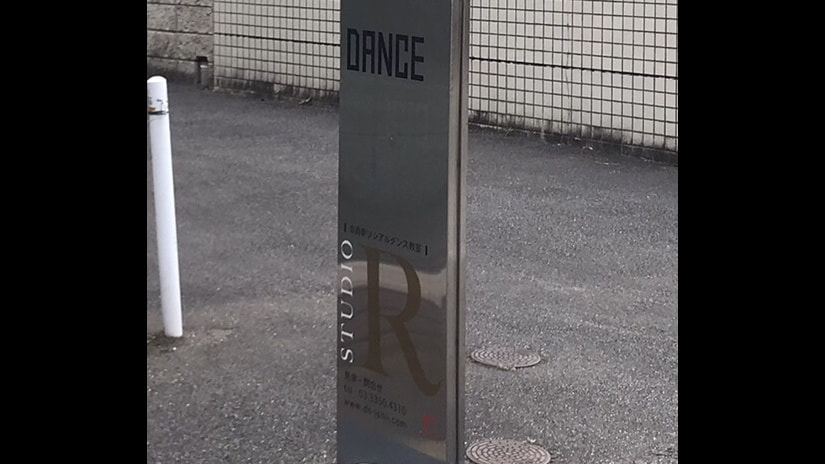 左側に 低めのシルバーの「スタジオR」と書かれた看板があるので、