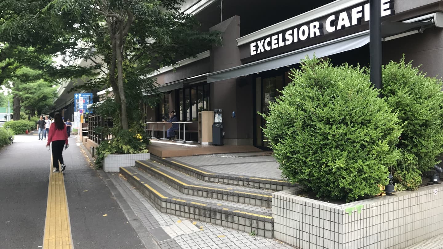 千駄ヶ谷駅からの場合、駅の並びに"エクセルシオールカフェ"があるので
