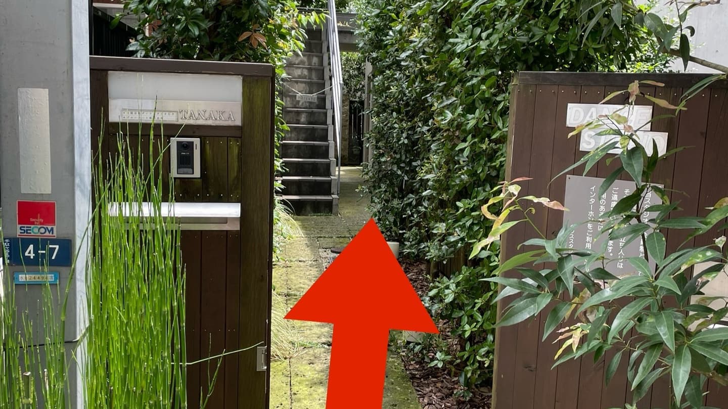 突き当たりは古いアパート。その手前左手がスタジオR入り口です。→